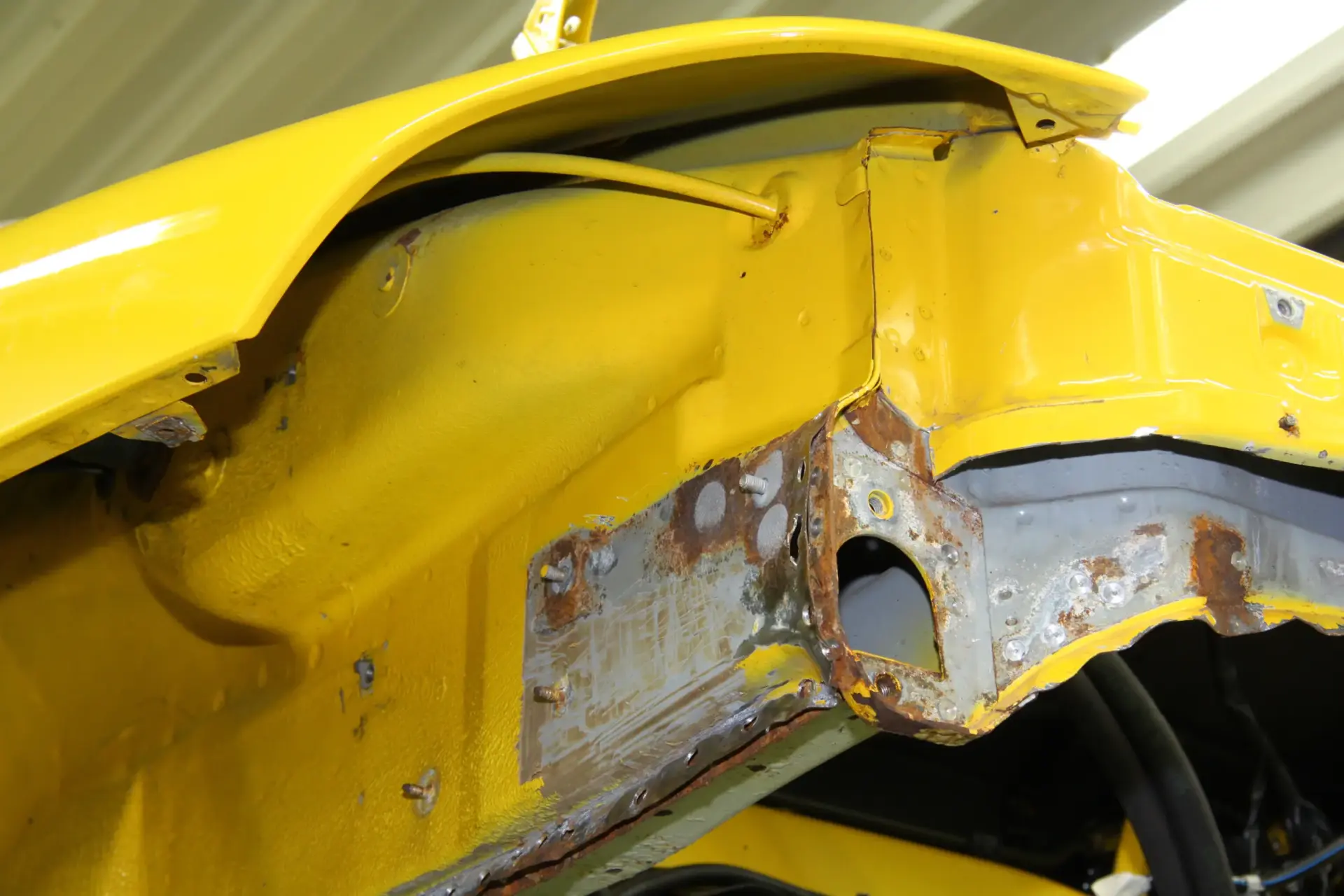 Modellübergreifende Baujahre ab 1990: Im Heckbereich (hinter bzw. unter der Radhausverkleidung und unter der Kunststoffstoßstange) zeigen sich beim 993 teilweise sogar nur grundierte oder ganz dünn lackierte Oberflächen. Der hintere Heckbereich und der Querträger unter der Kunststoffstoßstange erhielt überhaupt keinen zusätzlichen Schutz, was zu erheblichen, unbeachteten Schäden bis hin zur Durchrostung führt. Urwerk führt die Instandsetzung dieser Schäden gründlich, dauerhaft und mit vollständiger Dokumentation durch.