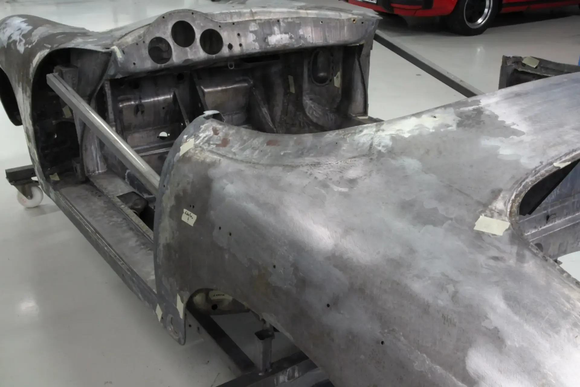 Bevor die Karosserie bei Urwerkrestaurierungen ein zweites und drittes Mal ins Tauchbad geht, werden alle Anbauteile vollständig angesetzt. Die Passungen werden überprüft und exakt eingestellt. Erst danach wird Ihr Porsche wieder demontiert und für die nächsten Arbeitsschritte vorbereitet.